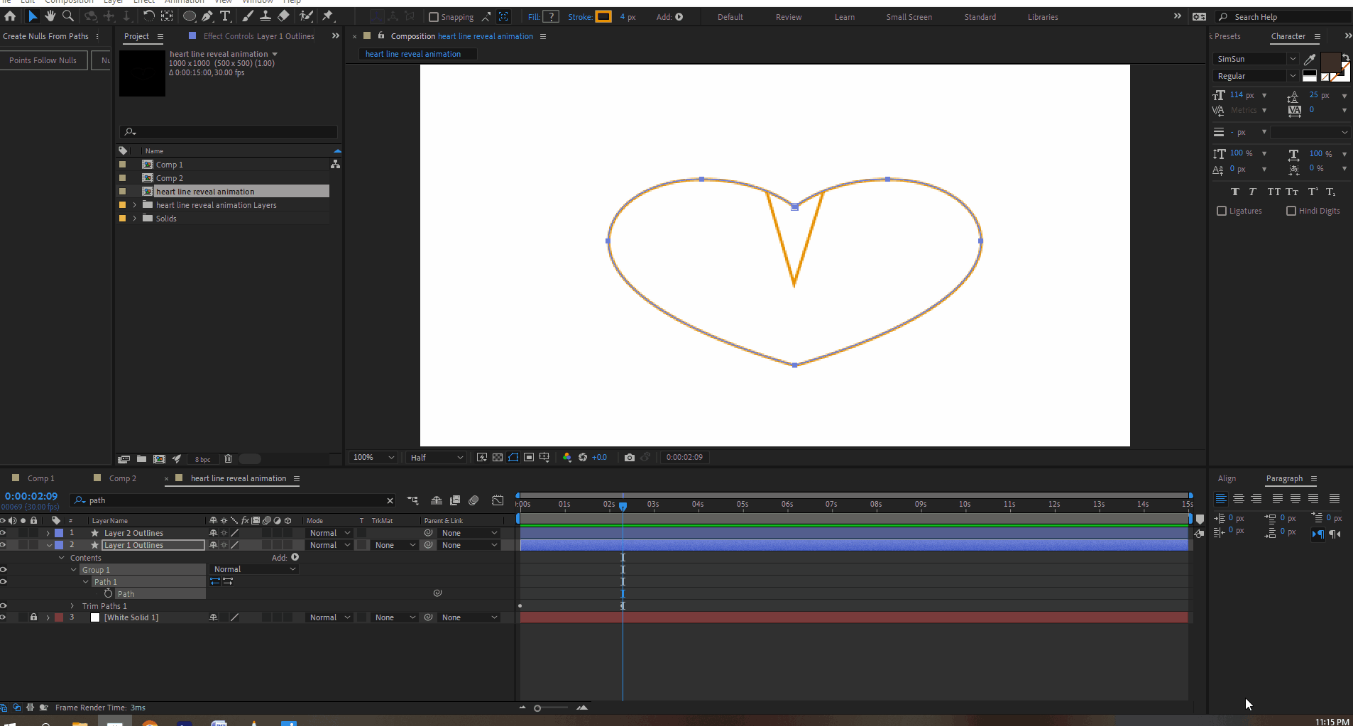 2- another thing. No way I can put the null in the middle of the heart. I selected the path of the heart and created nulls from paths - trace path. it goes miles away. I want that in the middle also. How can I do that?