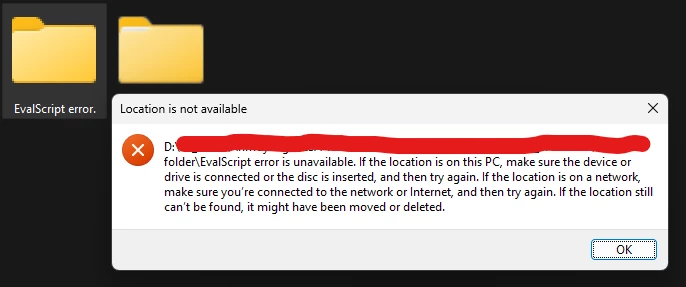 When i clicked it, it said that the location is not available,. I've tried to forced delete these folder it said "error 0x80004005. I already restarted my laptop and it's still not working.