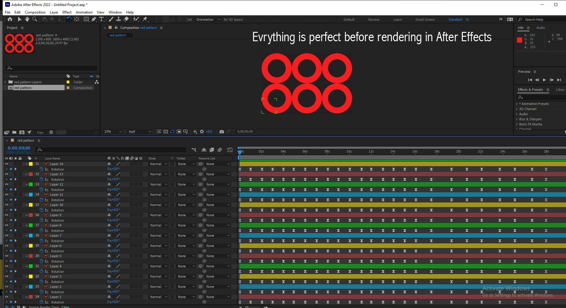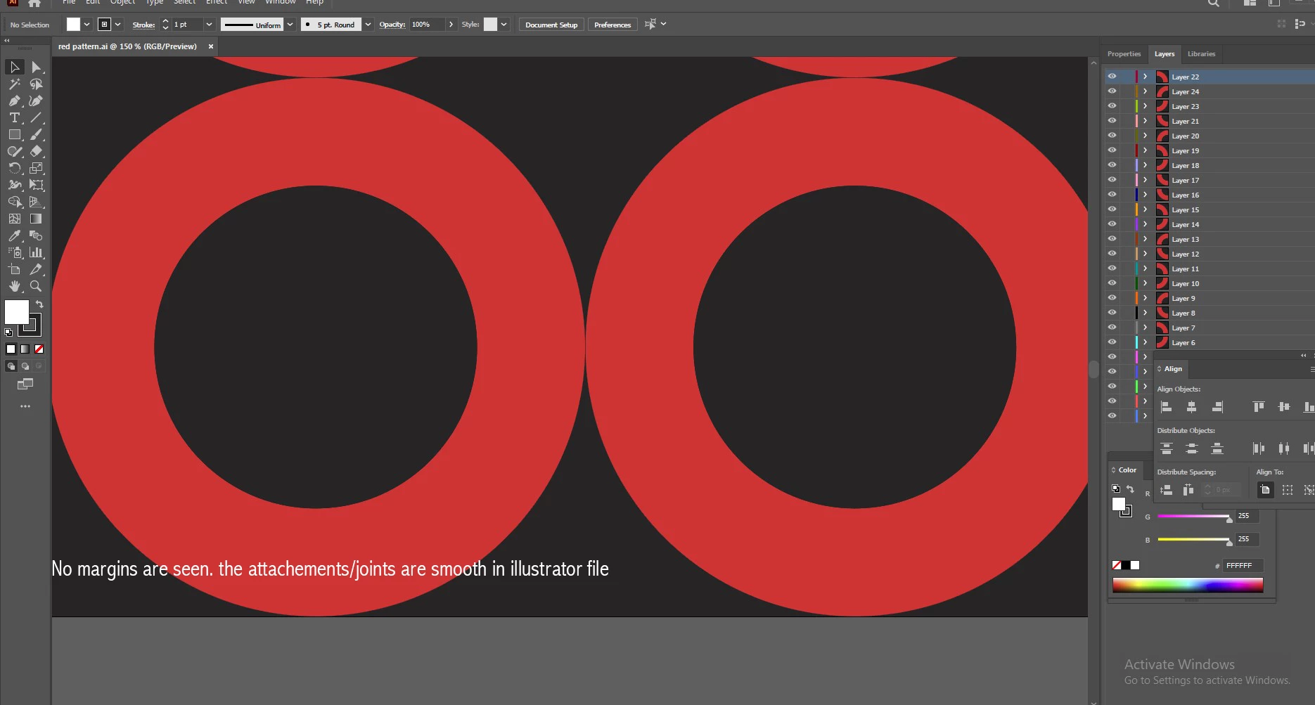 My client provides sample, which is black and white animation. He wants it in red and black. I draw the vectors in Illustrator.In Black and white animation when parts are go back together to form the circular shape no margins are visible in between them. Everything was perfect. I checked Illustrator file, no visible margins were there. When I was working in after effect the margins blend smoothly. But when I render using Adobe Media Encoder the separate pieces (Margins) are visible.