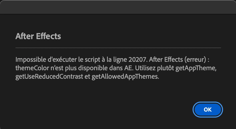 Au lancement d'After effects 2025, j'ai ce message d'erreur :