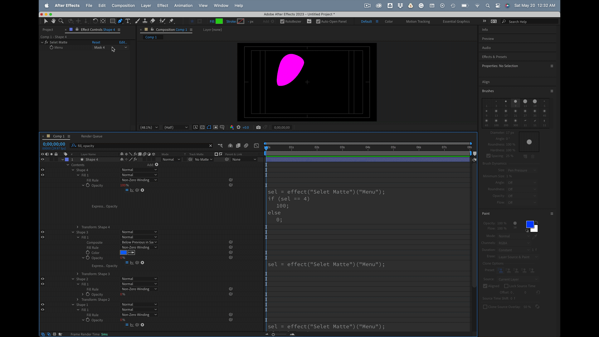 I'd like to set up a dropdown in my MOGRT that lets me swap which of the mask shapes are being used on the two layers that I need to mask.