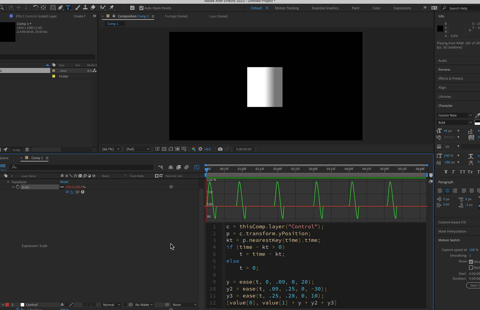 In the video example I've manually animated the bounce animation by moving only the Y scale, but I'd like to know if there is an eaiser way to so with expressions. So everytimethe X position on the Slider changes, the Y scale on the Null object that all images are linked to would have a little bounce.