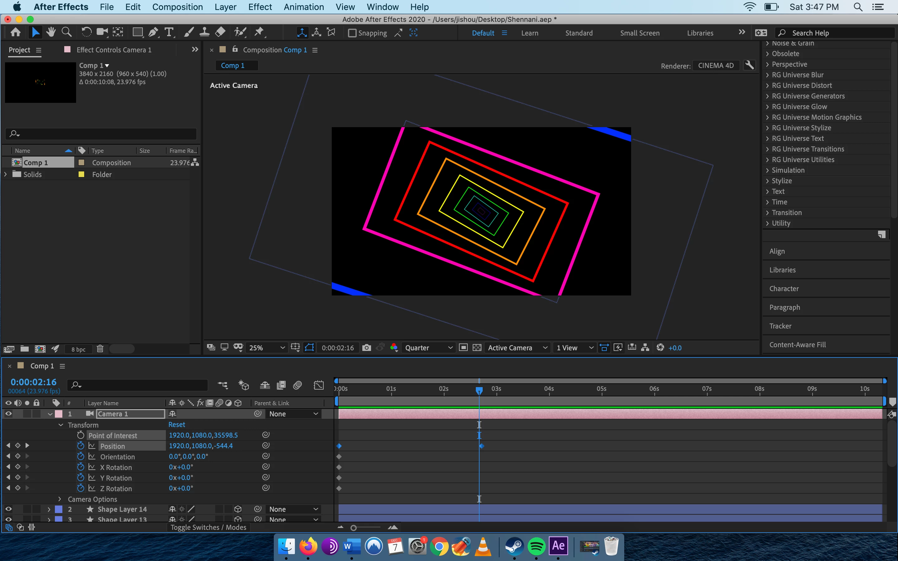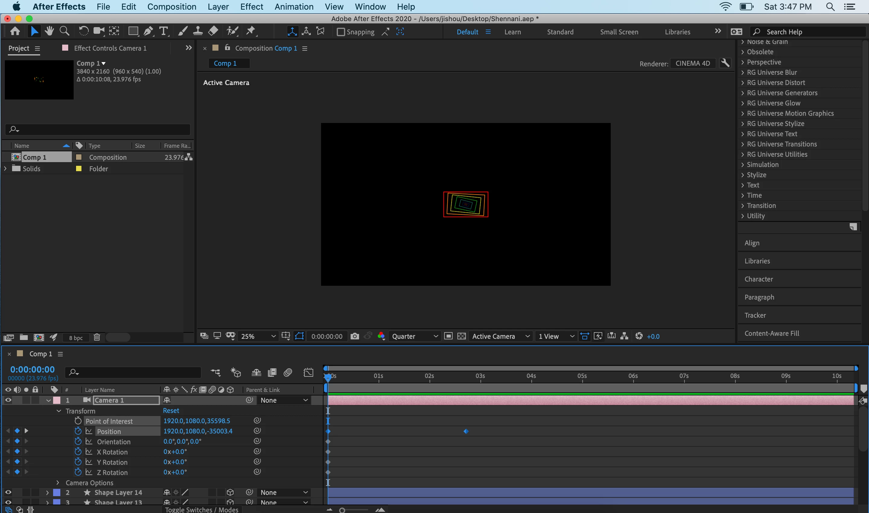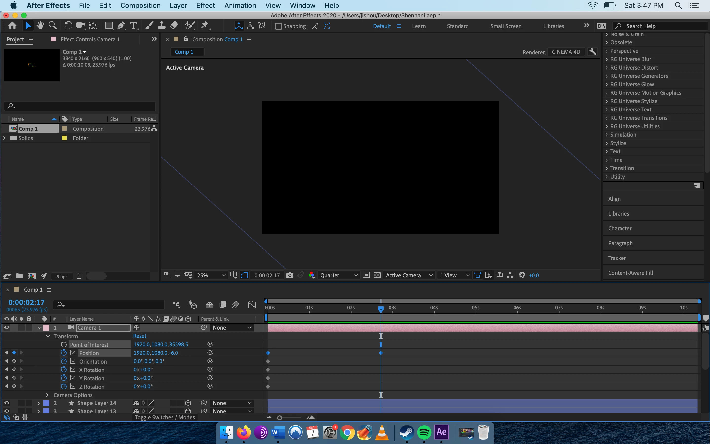 I've been having an issue with keyframes in the current project I'm wokring on. Basically I'm trying to zoom in massively with a camera on some rectangles. It works fine for the entire clip, but as it reaches the end point it is only halfway done with the animation. After that, it just jumps to the end. The effects is that its basically showing the animation as it should but then it just suddenly shows what it should on the final frame.