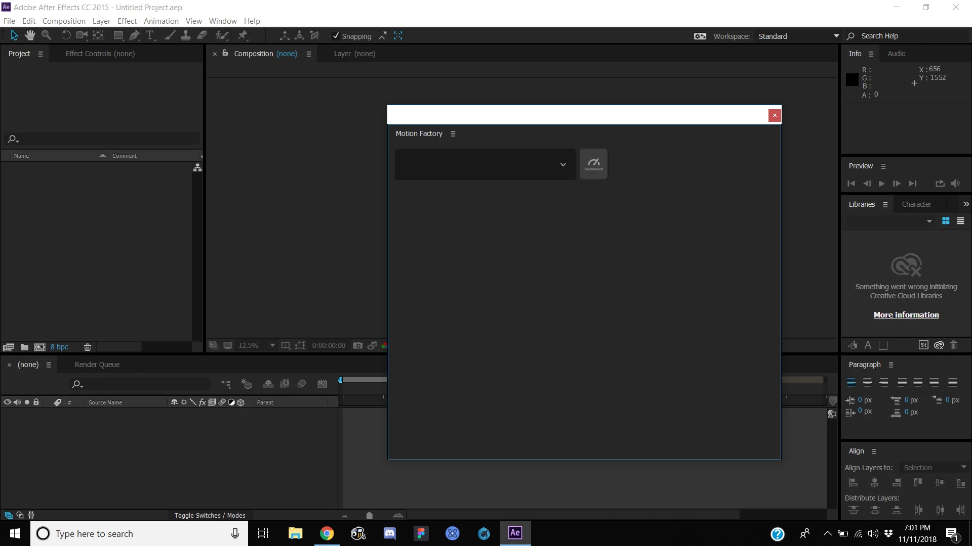 Motion Factory panel empty
