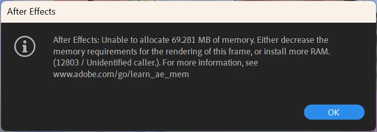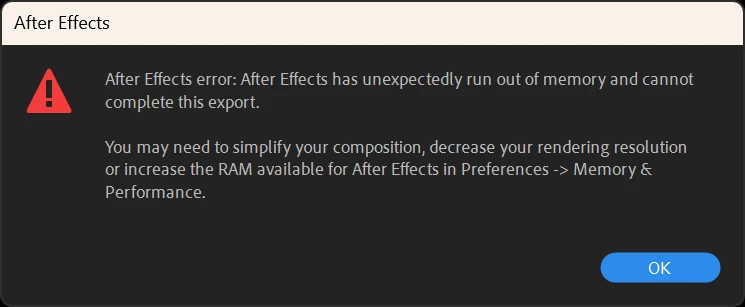 I'm running into an Out of Memory error in After Effects 24.2.1 that I just can't fix and am looking for solutions.
