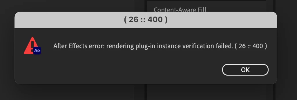 After Effects error: rendering plug-in instance verification failed. (26::400)
