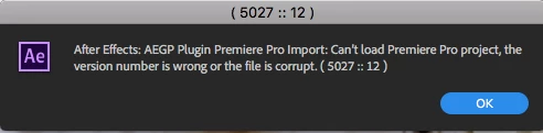 When I try to import the newly saved Premiere file into AE it says following: