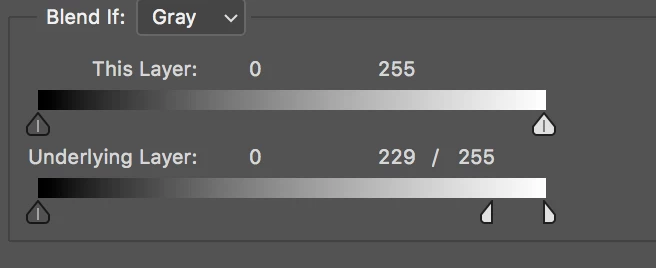 I'm layering text over a background paper texture and am trying to change the blending mode to make the text look like it's printed on the paper. It's very easy to achieve this effect using Photoshop's "Blend If" feature in the blending modes menu: