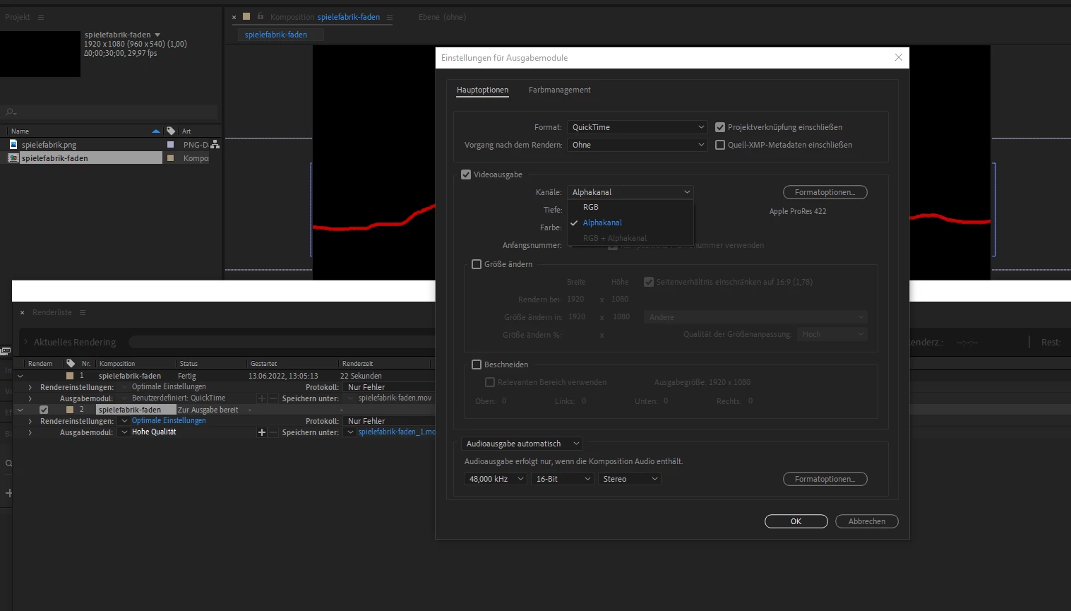 ich würde gerne meine Videos in Farbe rendern und ohne Hintergrund (Transparent!)