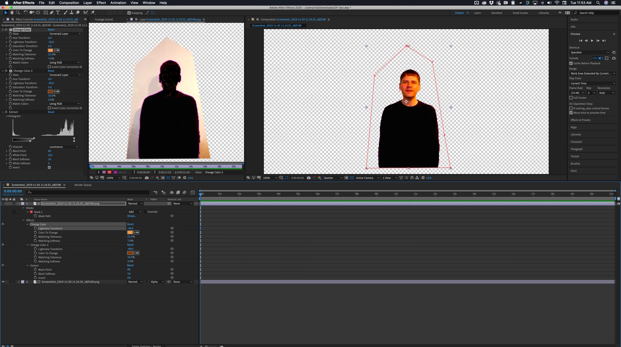 Hi guys, this might be a newbie quiestion: I am rotoscoping a 2 minute long clip with a person in front a a white wall. The colors and luminance makes it impossible with keylight or luma key. So I have to you use rotoscope. I have seen a few tutorials and I have now spent 2 hours going frame by frame and I am not even half way through the clip. Is there a way to do this quicker? To "play" through the whole clip and then go back and correct? As for now I am doing frame by frame like I said and I hope there is a quicker way through this... Thanks for any tips.
