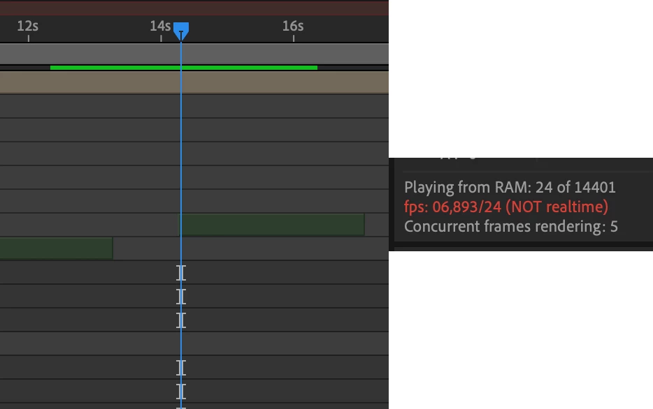 Here: I have a green bar on the timeline, however the preview chokes and drops to frustrating 6 fps