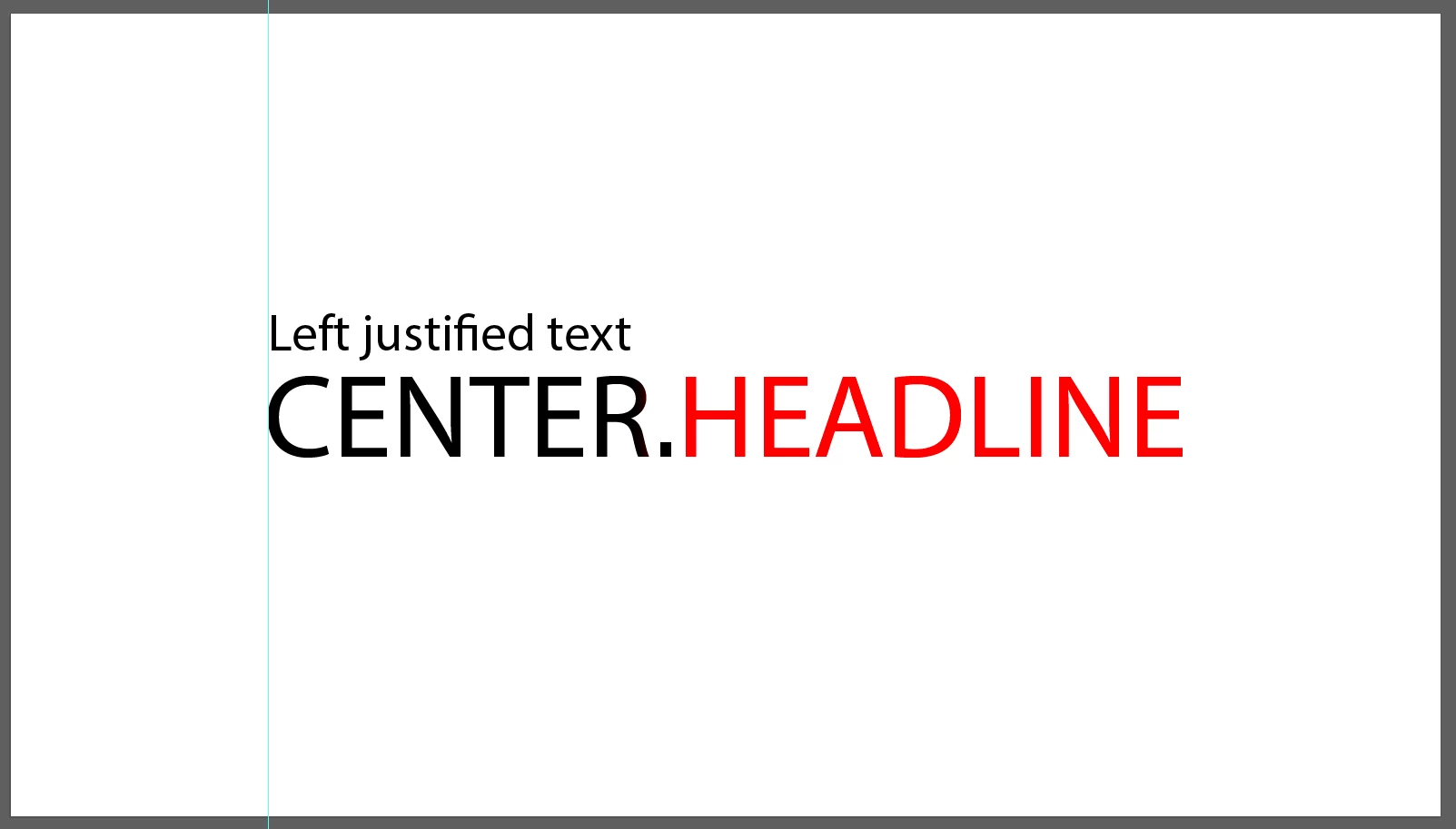 I have a main text layer that is centred ("CENTER.HEADLINE") and a left justified text layer ("Left justified text") that is left justified to the left side of CENTER.HEADLINE and moves dynamically when I change the headline text.