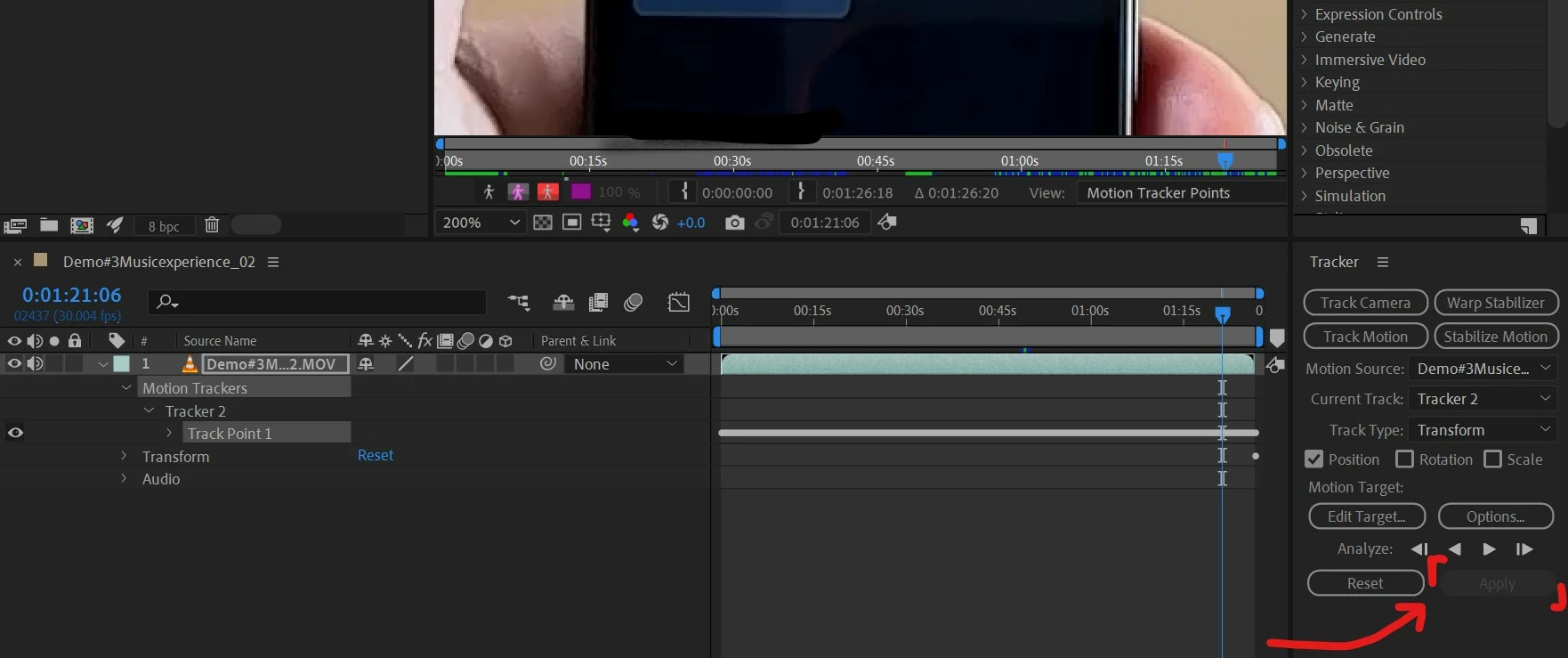 I have a fully tracked Tracker Point on my footage. How can I apply it to stabilize the footage?
