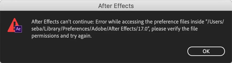 Trouble in starting up After Effects - "Error while accessing the preference files inside..."