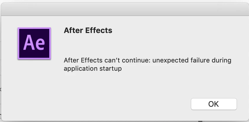 When I run the After Effects, it shows an alert as shown as below and doesn't start.