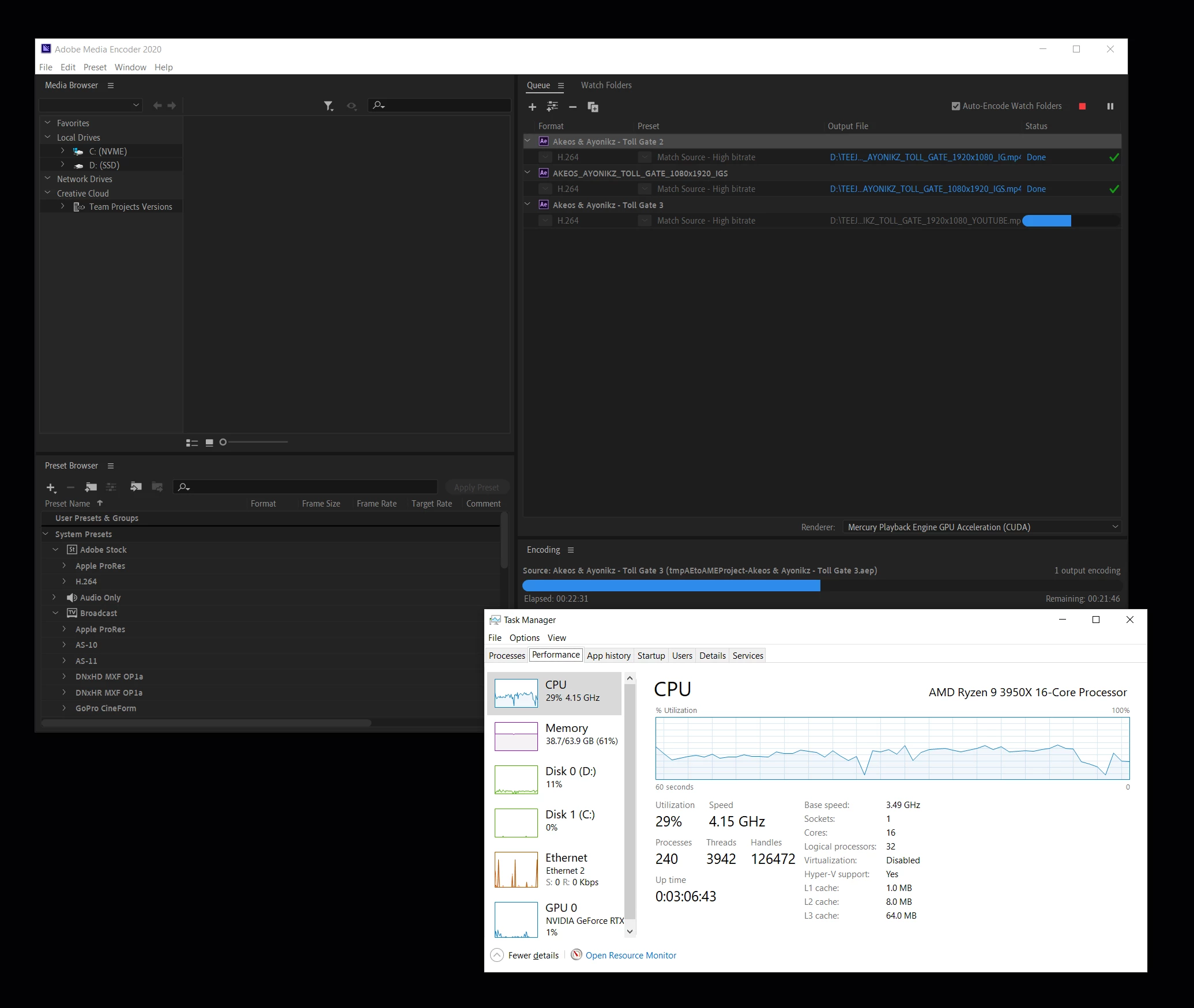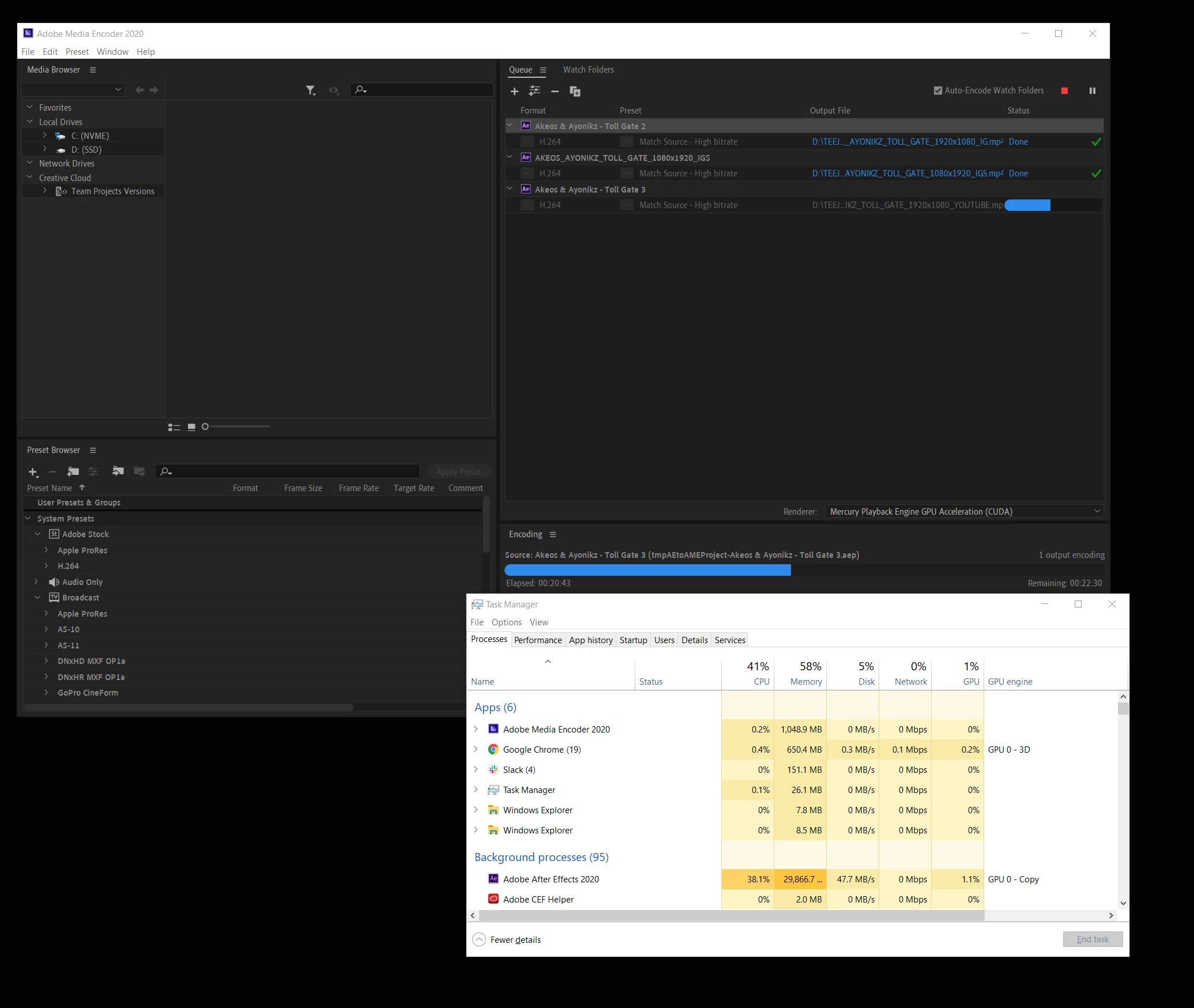 Opened up task manager to see if I could find an issue and turns out im only using 30% - 50% CPU while running AE / rendering in AME.