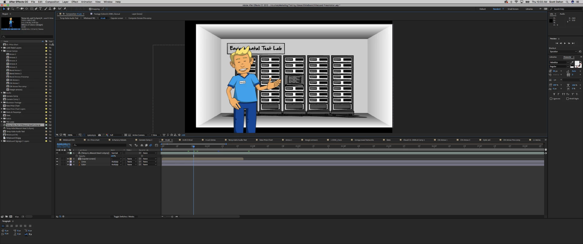 Layer "Lab" is a precomp with the character ( an imported CH scene) and the background, when the opacity changes, as you can see, you can start to see through the character? There is no opacity change in the pre-comp. Continualy rasterize /collapse transfomations is activated on the problem layer, turning it OFF fixes it. BUT i need it on otherwise the graphics look like garbage. Anyone have any ideas on how I can work around this?