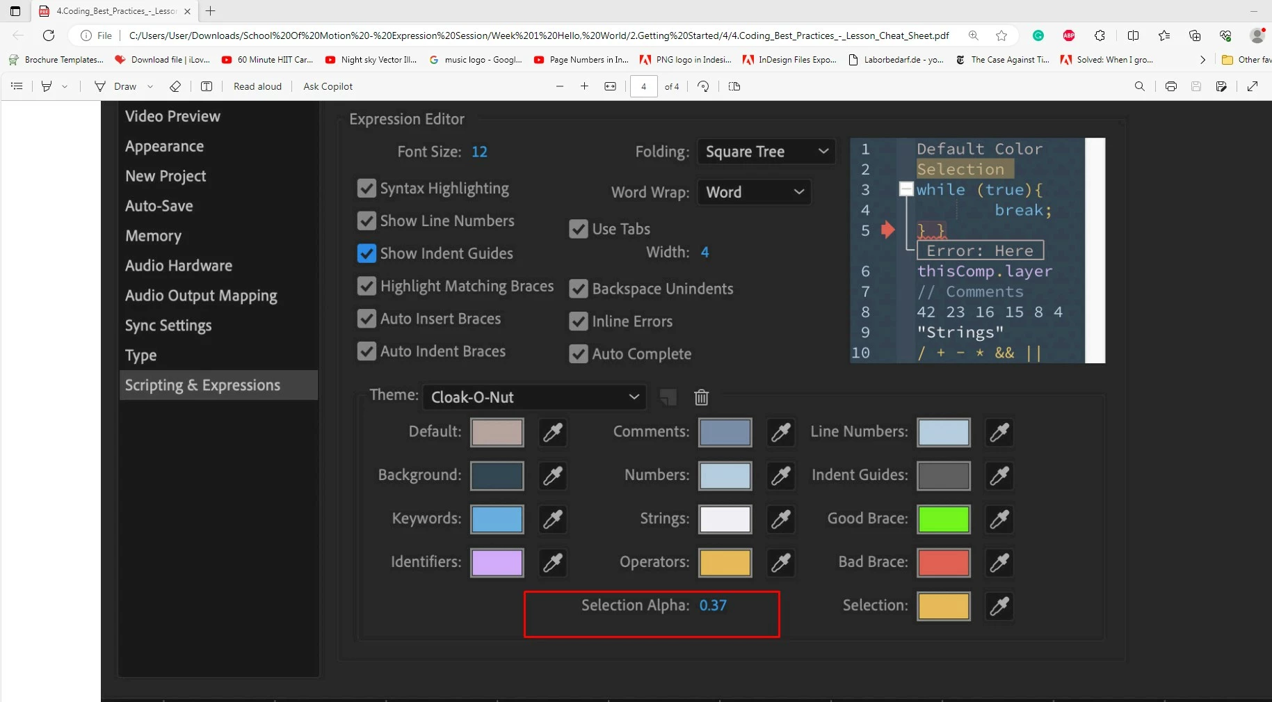 I am learning after effects expressions. The tutorial am following, there the tutor said the student and the teacher need to have same settings so taht we are on the same page throughout the class.