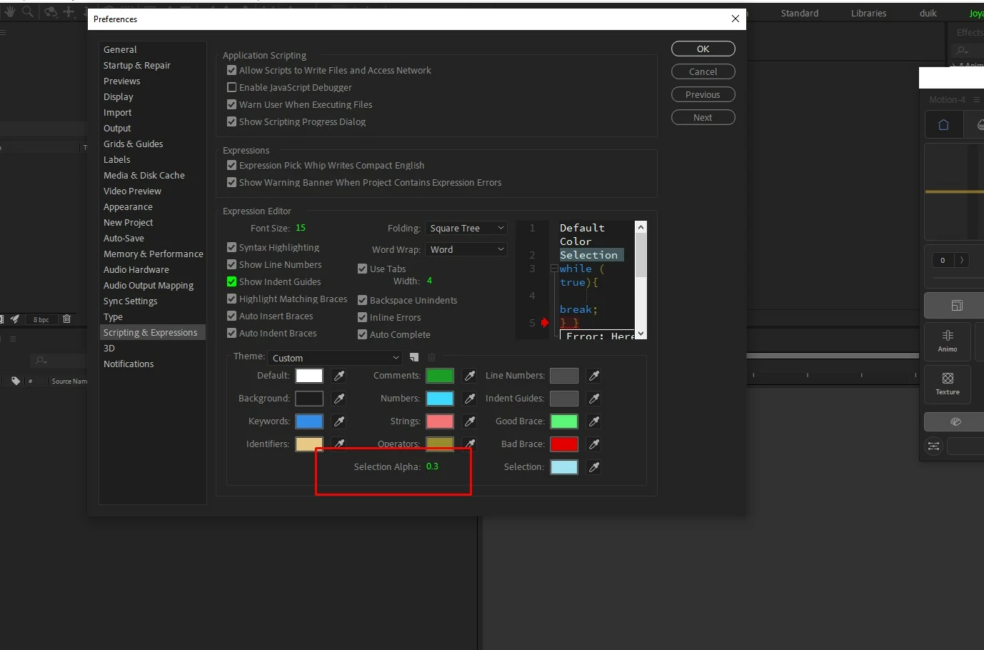 what is 'selection alpha' in scripting? should I change the number?
