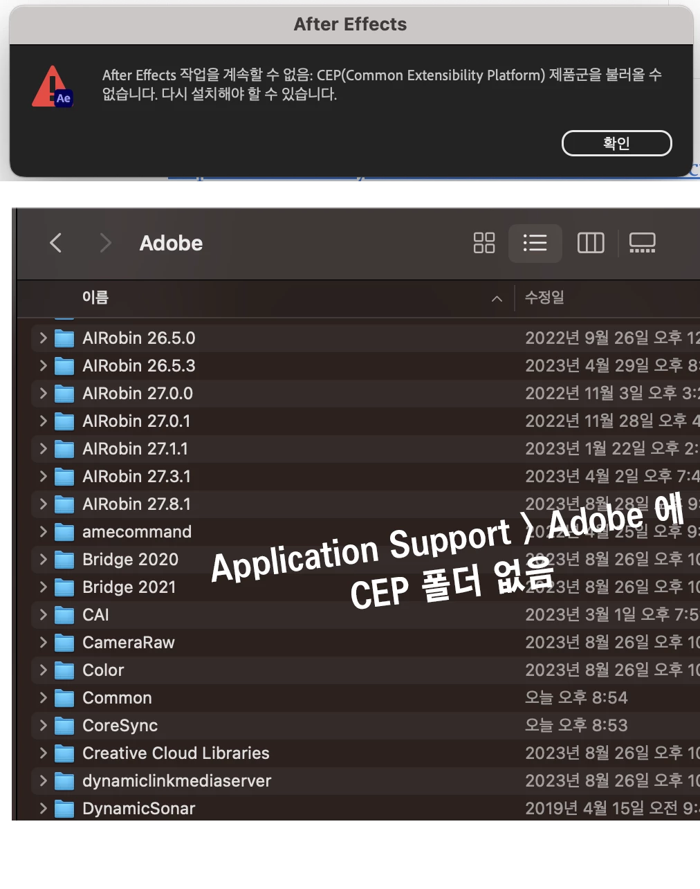 에프터이펙트 CEP 오류