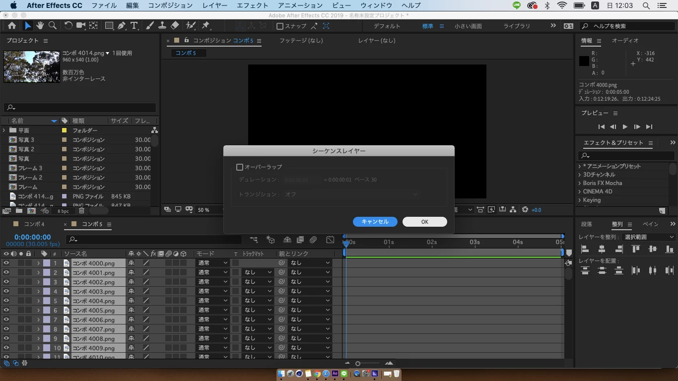 そこで、「連番ファイルで書き出し→再度AEで読み込み、並べてH.264で書き出し」という流れを取りたいのですがうまくいきません。