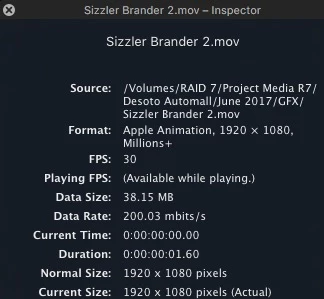Looking at Quicktime inspector, you can see it is an Apple Animation format with Millions + 1920 X 1080.