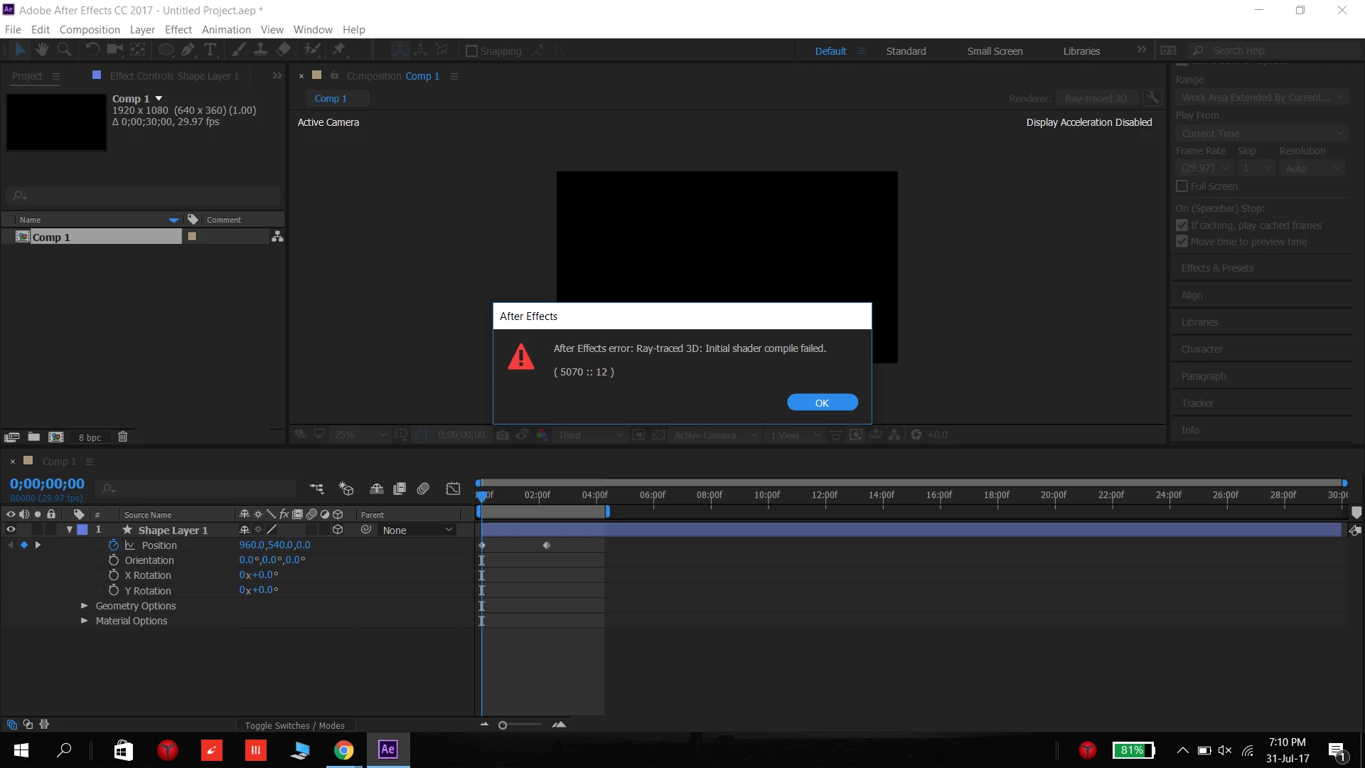 Display acceleration disabled in After Effects