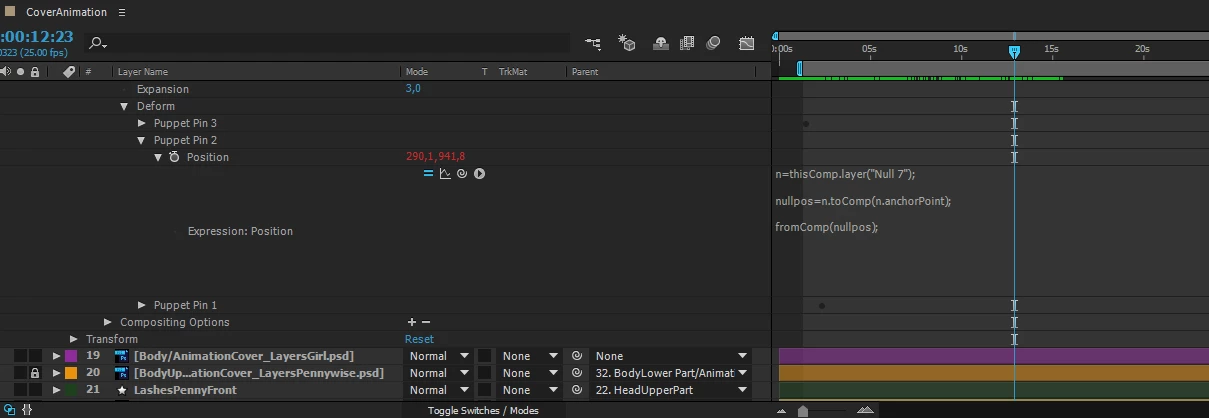 I have added an expression to a puppet pin so that this pin is parented with a Null. But is there a way to only parent the Y value with the Null?
