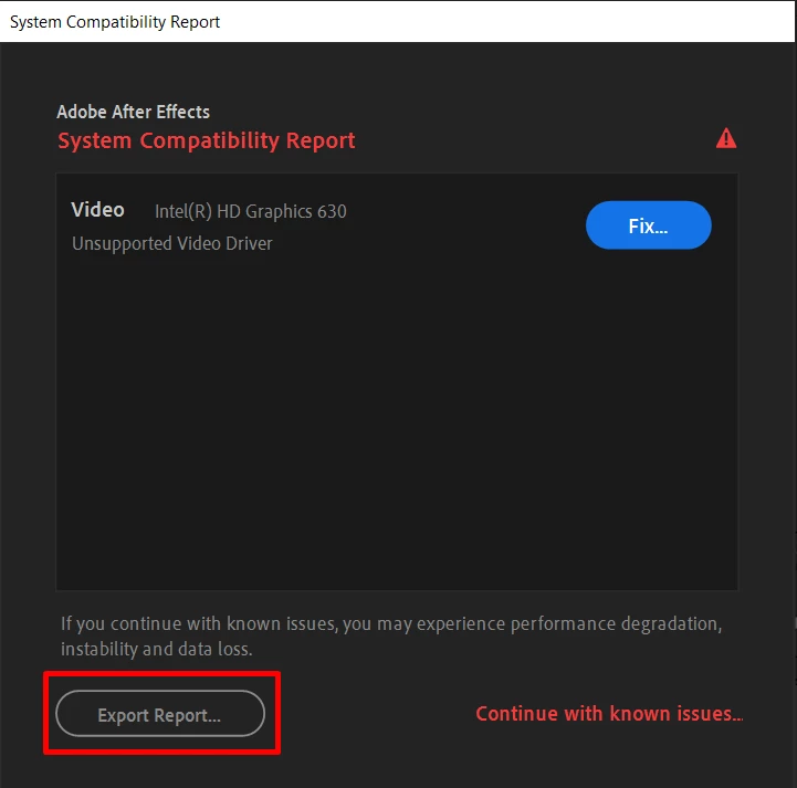 Adobe Premiere Pro and After Effects includes System Compatibility Report to identify the software or driver with a known issue which may cause compatibility or performance issues. The report runs when the application is launched and is most commonly invoked due to outdated GPU drivers.