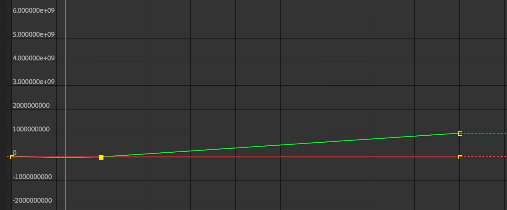I add a starting point of 0, and endpoint of 1000 000 000 000. So far so good. Interpolation is how I would expect it to be.