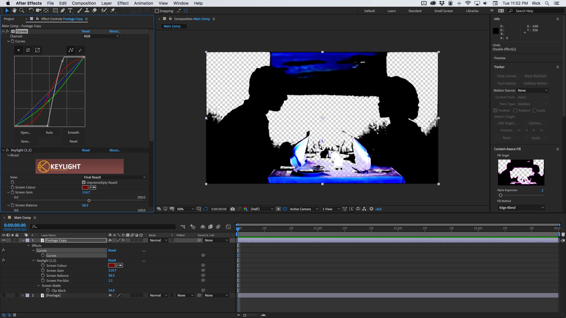 I'm attempting to do some luma keying, with the Luma Key plugin, removing the background of a face, (rotobrush isn't doing the trick and using the pen tool is just psychotic),