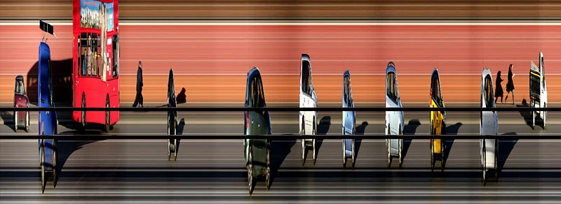 The image is borrowed from Martin Dixon, who created a program in Processing. (You can read more at slitcam. com )