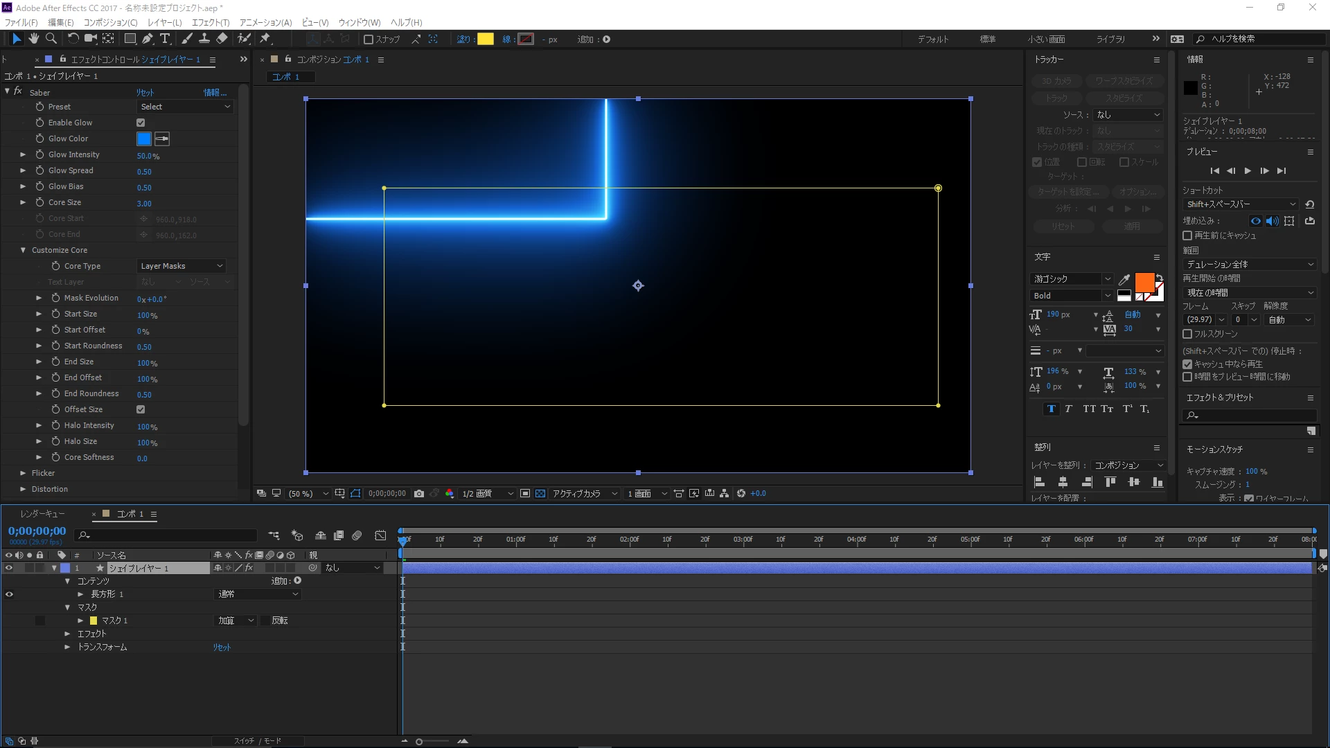 video copilotというサイトのsaberというプラグインを導入して使ったのですが、cuatomize coreという項目のcore type を layer mask にしてマスクにそってエフェクトをかけようとしているのですが、何故かマスクとずれた場所にエフェクトがかかります。どうすればいいでしょうか?