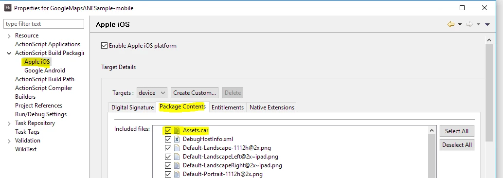 I have created an asset.car file to package with my AIR app, but I am not sure where to put it. The documentation says the "root directory". Is that the main folder that has your project name on it, or in the "(default package)" under the src folder??