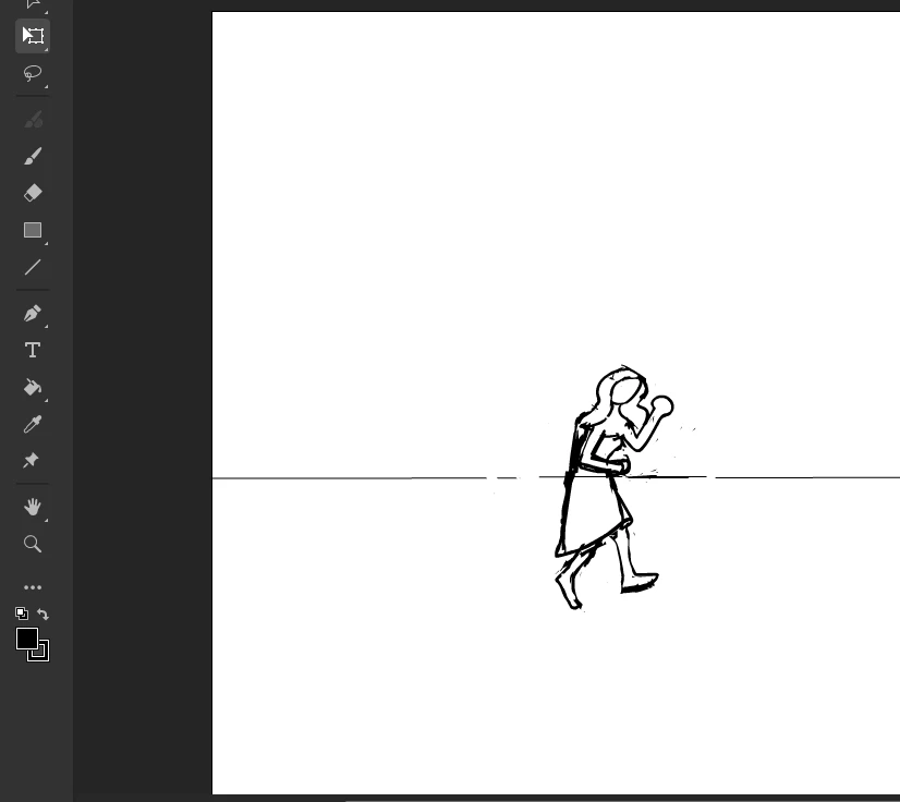 Doing an animation assignment but now have a strange issue when trying to move a character outline towards the centre of the frame, but it then gets blocked by a white space. I checked to see if it was something accidental I did on another layer (ex. eraser or other) but found nothing.