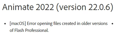 Compatibility was broken before in Animate 22 on Mac and later fixed in AA 22.0.6.