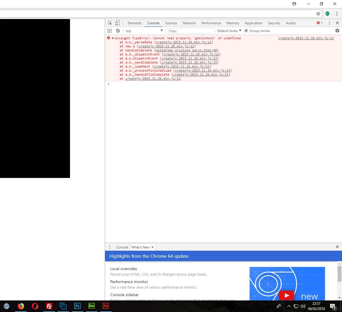 Error during execution Js created by animate