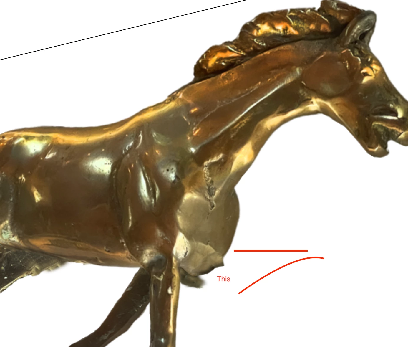 The issue is that the way I split the legs on the opposite side of the horse from the viewer. There are weird points that stick out, parts that I should have clone brushed, etc, to make it look right.