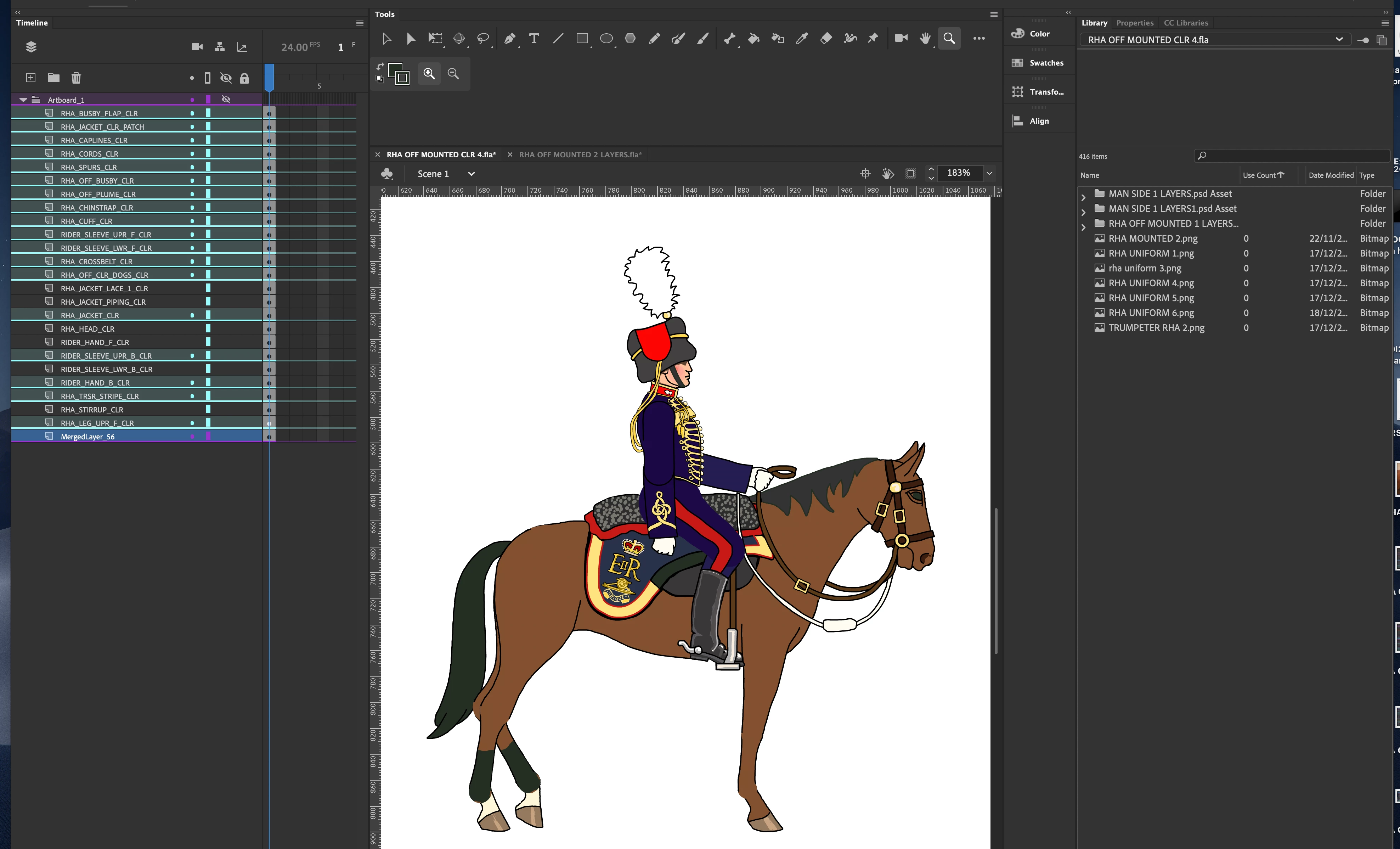 I have created this illustration in Animate which has about 80 layers. I want to merge all the layers, so that I can print the image as an illustration, with just the one flattened layer. I have merged about 40 layers OK, but when I continue to merge the rest of the layers, the layers just turn totally black (in facdt, in this case, dark blue.). Does anyone know how I can merge all the layers, so that I end up with a single image ready for printing in another program.? Thanks for any advice.