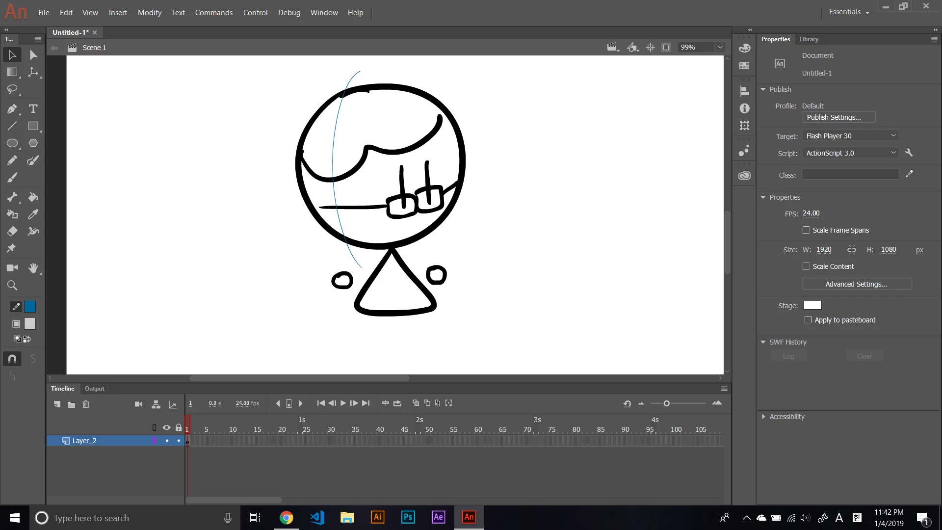 I learned animating through Adobe Flash and recently moved onto Adobe Animate. I thought that Animate's pencil tool will be same as the Flash's one. So I tried shading a character by pencil tool but apparently it just colors everything inside the stroke. I wanted to color only the crescent part of the drawing. What am I supposed to do? (Sorry about such a noob question...but I just can't find it on the internet)