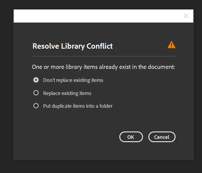 what is the ActionScript solution for "resolve library confict" dialog box in as3 code
