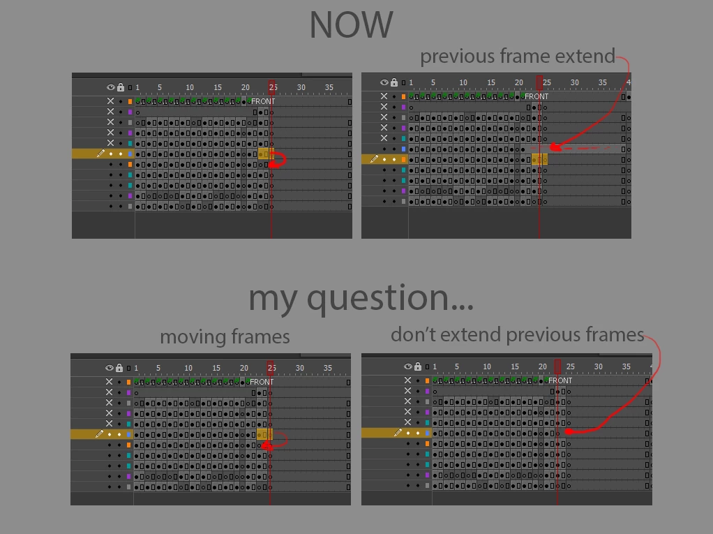 If I Move some frames in animate CC (2017), the previous frames are automatically extended, see the picture.