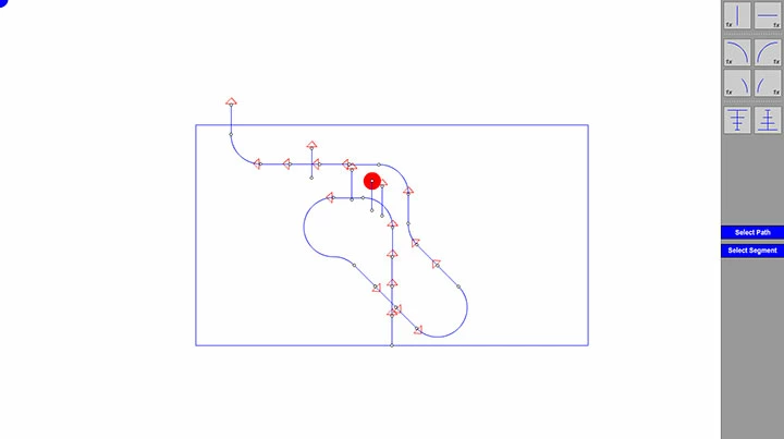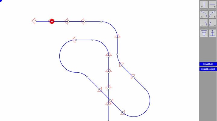 Basically i'm creating a program which allows a user to draw up to 3 paths onto the Flash stage by clicking different options in a pallete located at the side of the screen. These paths will be created in different layers (MovieClips) in three different colours. As yet i've only allowed the creation on the first path which is blue. The path is made up of different segments so when the user clicks the straight line button a straight line graphic is placed onto the stage. If the user then clicks the right angle button a right angle is placed onto the stage, its origin is set to the end point of the last segment placed onto the stage so it builds a path. i have several different buttons which create different angled pieces allowing the path to go in different directions. This all works fine as pictured...