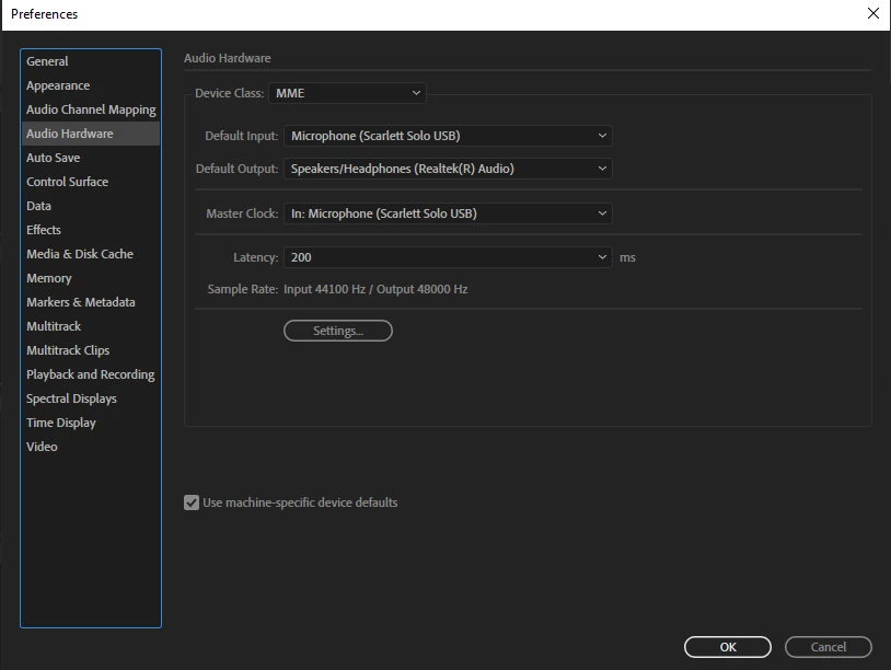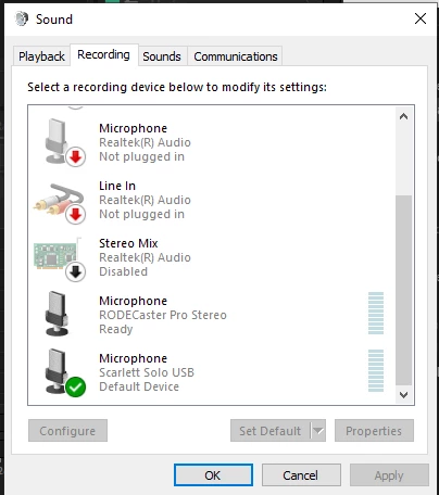 I can't for the life of me figure this one out. I recently switched my preamp and interface to the DBX286S and the Focusrite Solo 3rd Gen. Everything works fine in the free software Audacity, but I get no recording levels whatsoever in Audition. I have attached some photos to show you what my hardware settings are like. Ive been using audition since it was Cool Edit, and I'm stumped. It looks like it's all set up correctly.