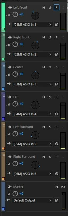 I have a MADI device connected to my laptop and I would like to record 5.1 sources to my laptop. I have successfully recorded days of stereo and mono tracks (30+ at once without issue), however I have not been able to find a way to set up an input for a 5.1 audio track.