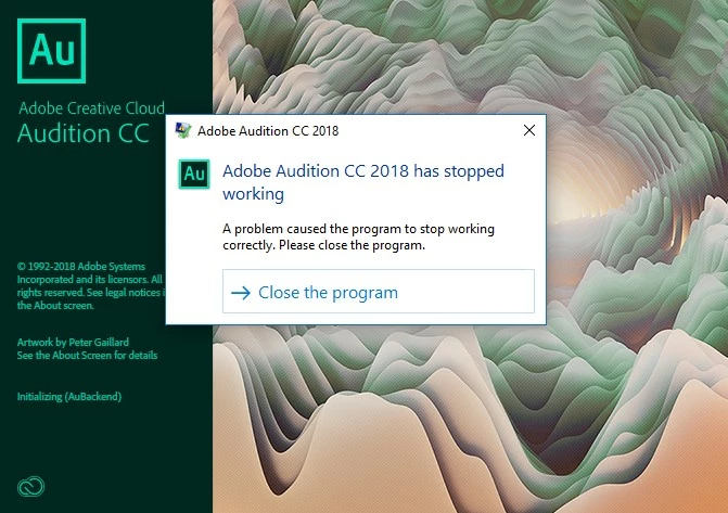- Installing older version (Audition CC). Crashes on starting up as well. (on: "Initializing Required Application Components... (BE)")