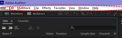 Audition dark mode has the menu bar plain white