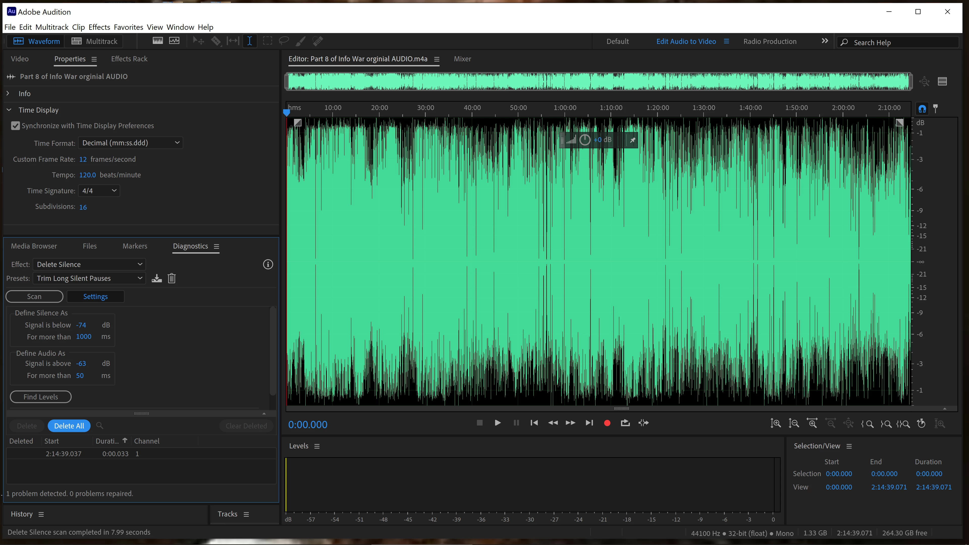I used to be able to easily tighten up my audios by deleting all the silent pauses and dropouts, but now the Delete All button doesn't work after I did the update. What is going on? The Scan worked for the long silent pauses- just the Delete button doesn't work (it just does nothing when I click Delete), and now even when I scan for short digital dropouts, nothing comes up there either when usually I would see multiple.