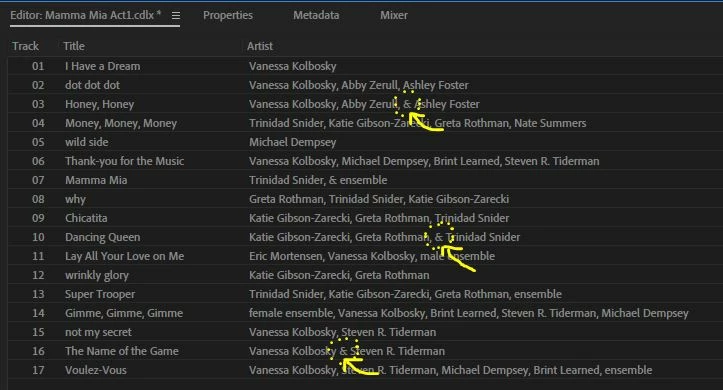 I'm getting eratic results for track artist info to burn to CDs as CDTEXT.