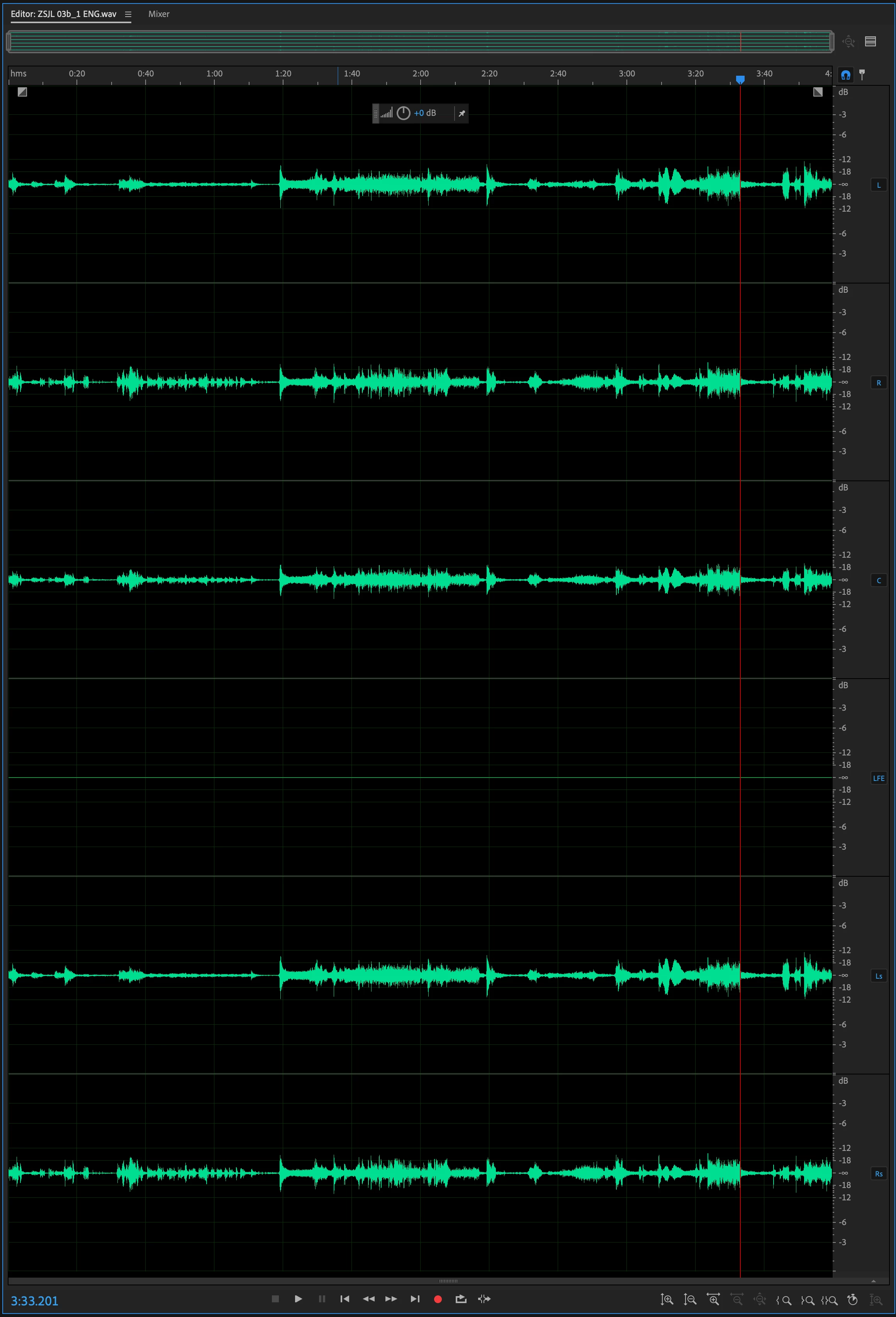 I used audition to extract the soundtrack from a video which has 5.1 audio and when I open that wav file in audition I can see that each channel has a label to the right (L, H, C, LFE, etc.) (click here to download file 1) (screenshot below).